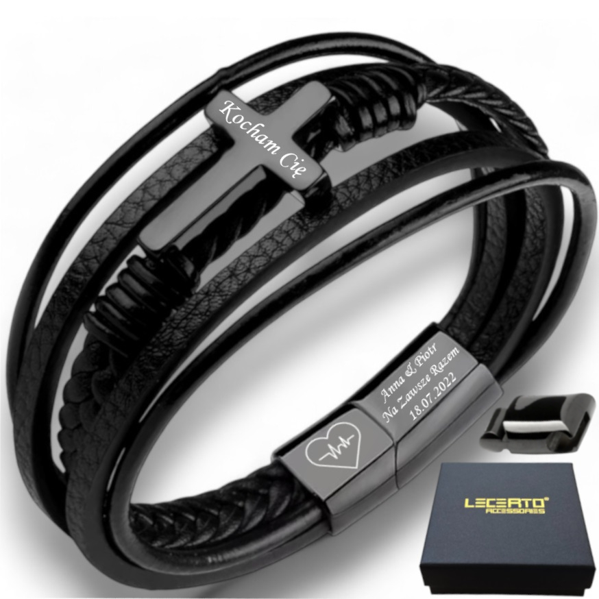 ☑️ W ramach aukcji całkowicie GRATIS możliwość umieszczenia swojego grawerunku na krzyżu oraz dowolnych elementach zapięcia bransoletki.