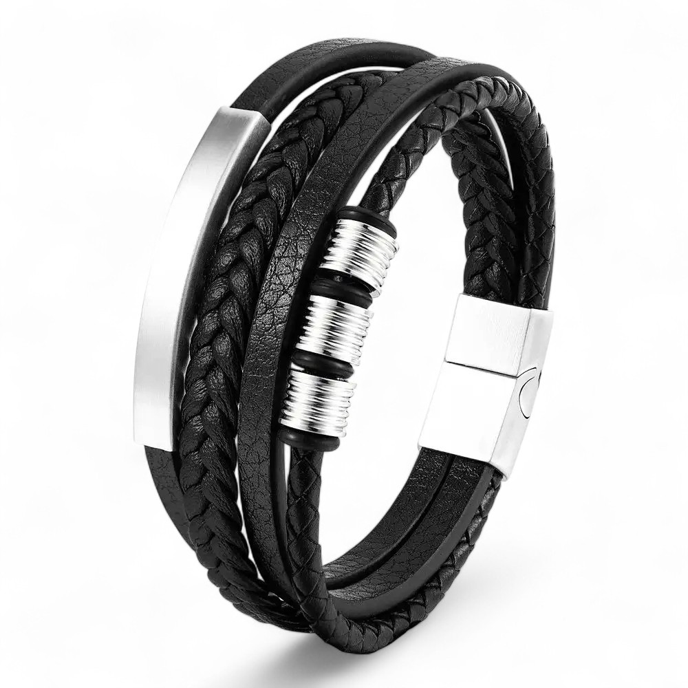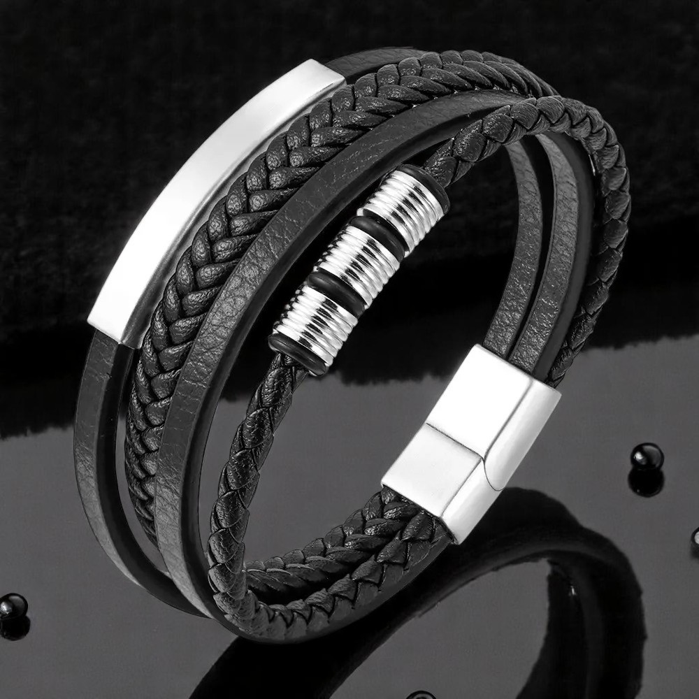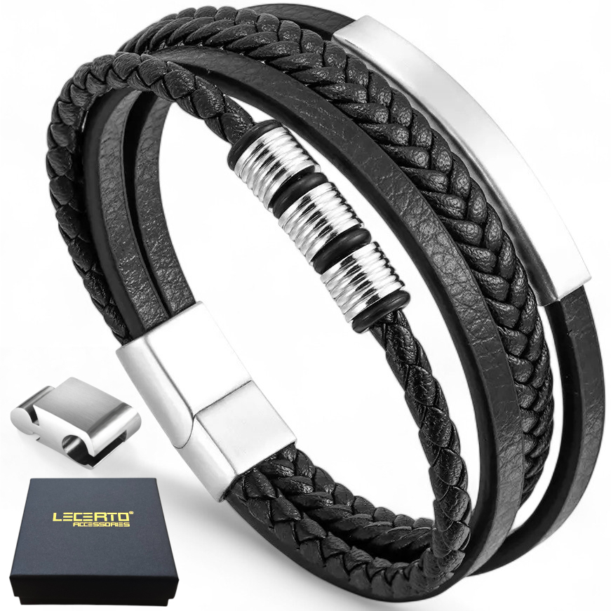 SKÓRZANA BRANSOLETKA PLECIONA MĘSKA REGULOWANA PREMIUM