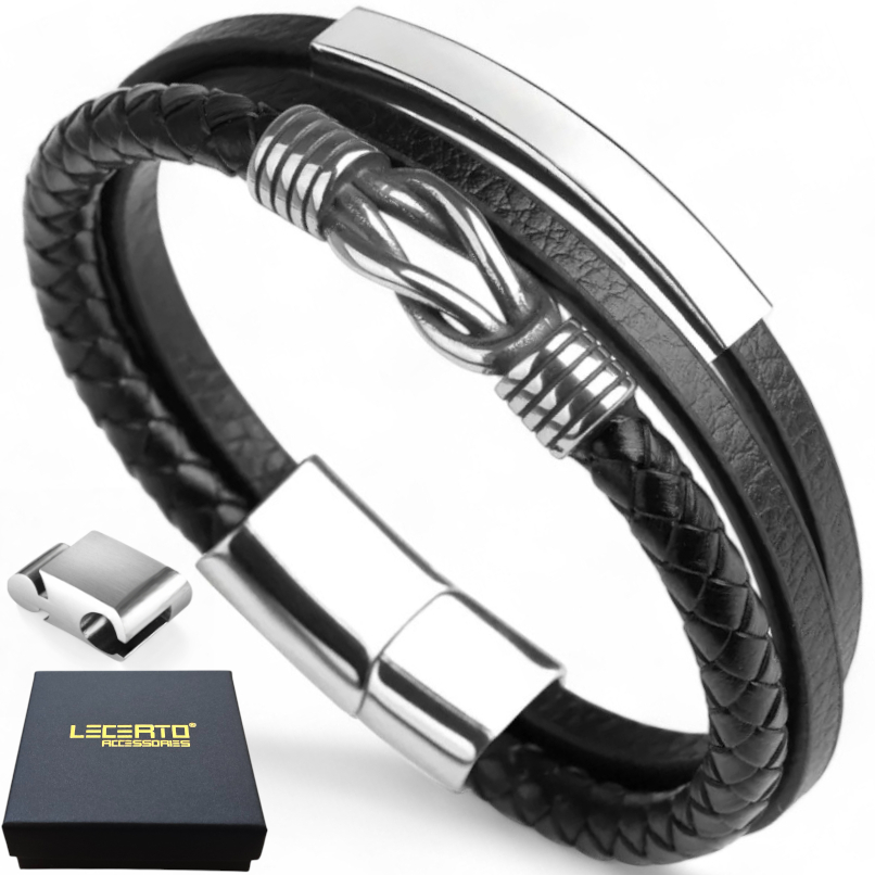 SKÓRZANA BRANSOLETKA PLECIONA MĘSKA REGULOWANA PREMIUM