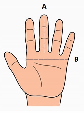 | Rozmiar | Długość środkowego palca (A) | Obwód dłoni (B) |